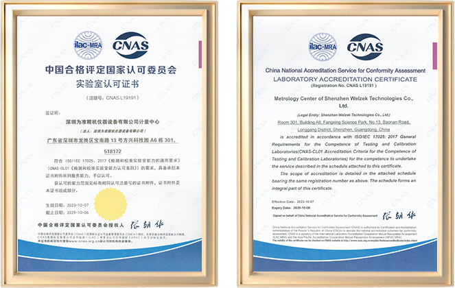 2025年,深圳为准精机仪器设备有限公司计量中心完成CNAS中国合格评定国家认可委员会实验室认可复审